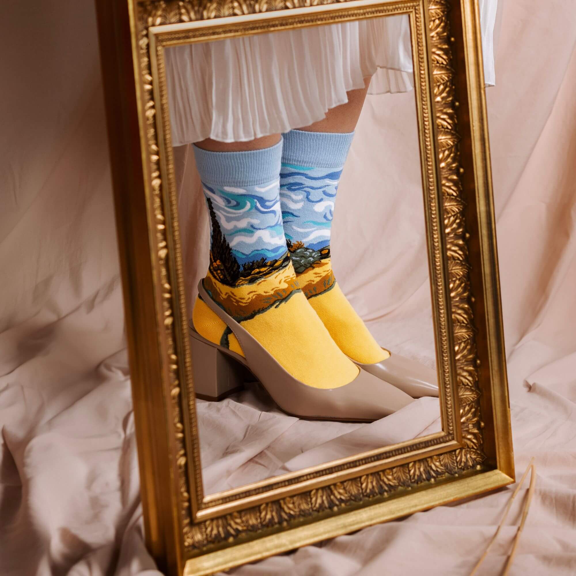 Mit unseren Socken kommst du dem Meisterwerk an deinen Füßen mit jedem Schritt ein Stückchen näher. Jedes eingearbeitete Detail bringt ein Stück künstlerische Tiefe in deinen Alltag.