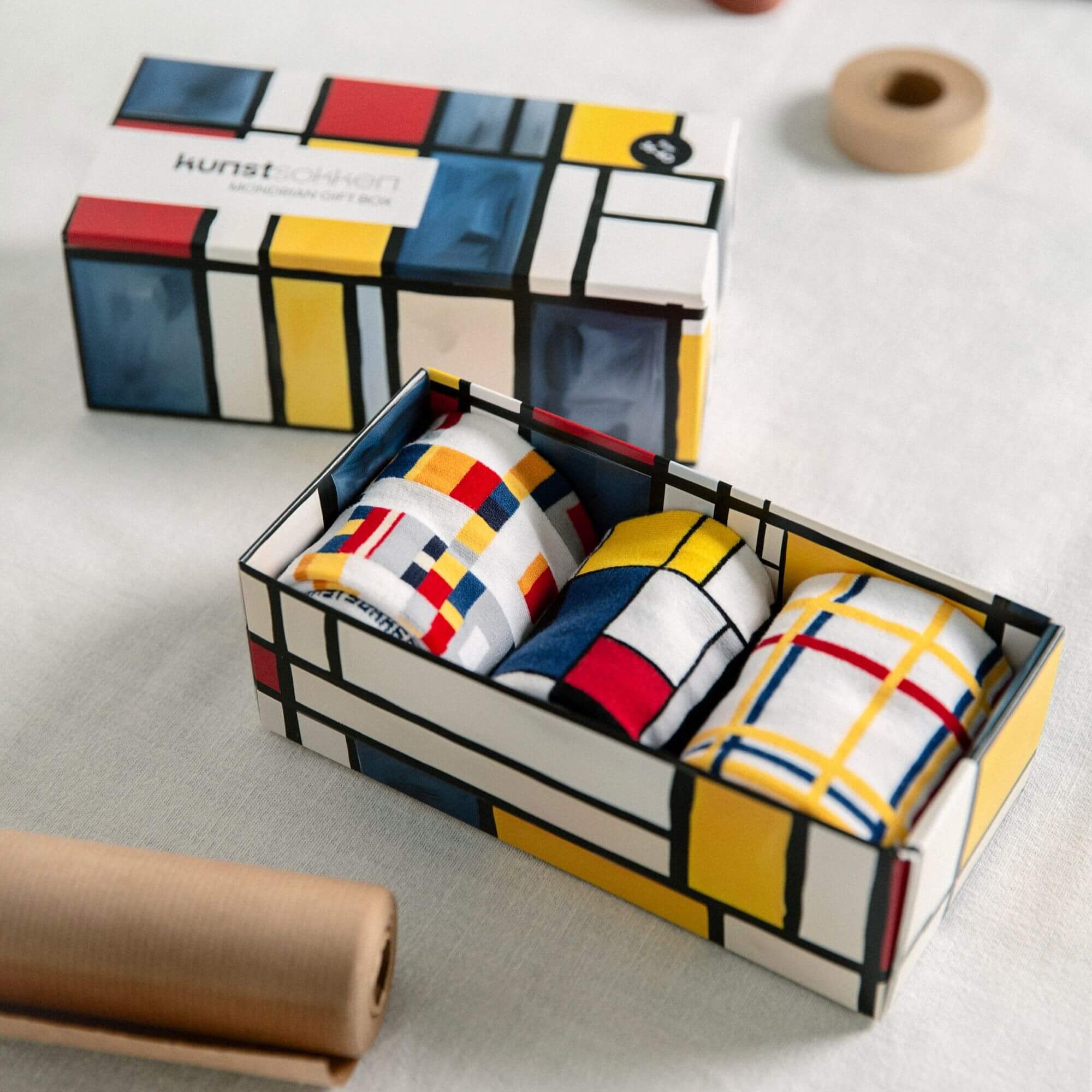 Dieses Set ist ein großes Danke an Mondriaans Kunst, mit feinen Details, die die Socken wunderbar herausstechen lassen.