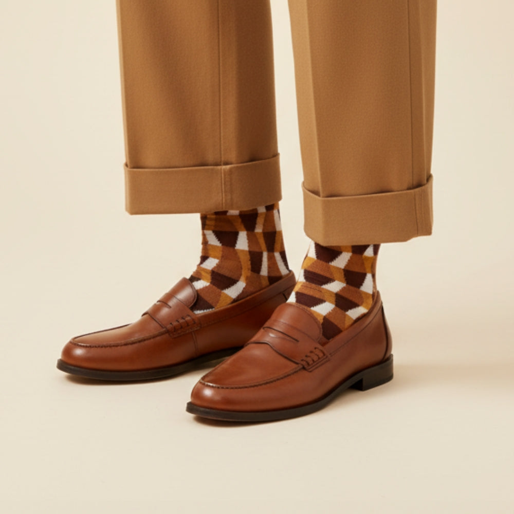 Warme Erdtöne – Braun, Terrakotta und Off-White – stapeln sich unendlich und erzeugen Bewegung mit jedem Schritt.