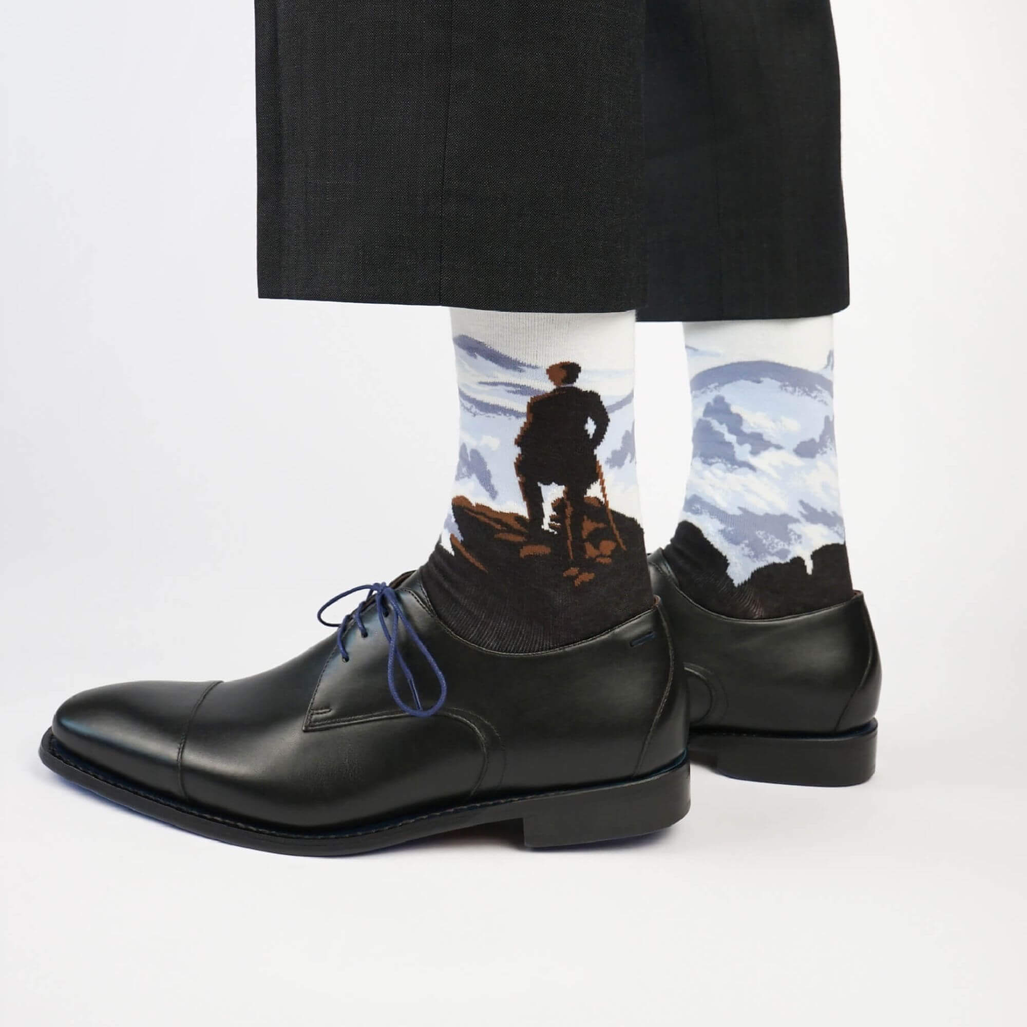 Dieses 4er-Pack kombiniert vier ikonische Meisterwerke, die jeweils auf ihre eigene Weise einen auffälligen Kontrast in Stil und Epoche zeigen. Von Van Goghs dramatischem Sternenhimmel bis zu Friedrichs einsamem Wanderer über dem Nebelmeer – jede Socke nimmt dich mit auf seine eigene visuelle Reise.