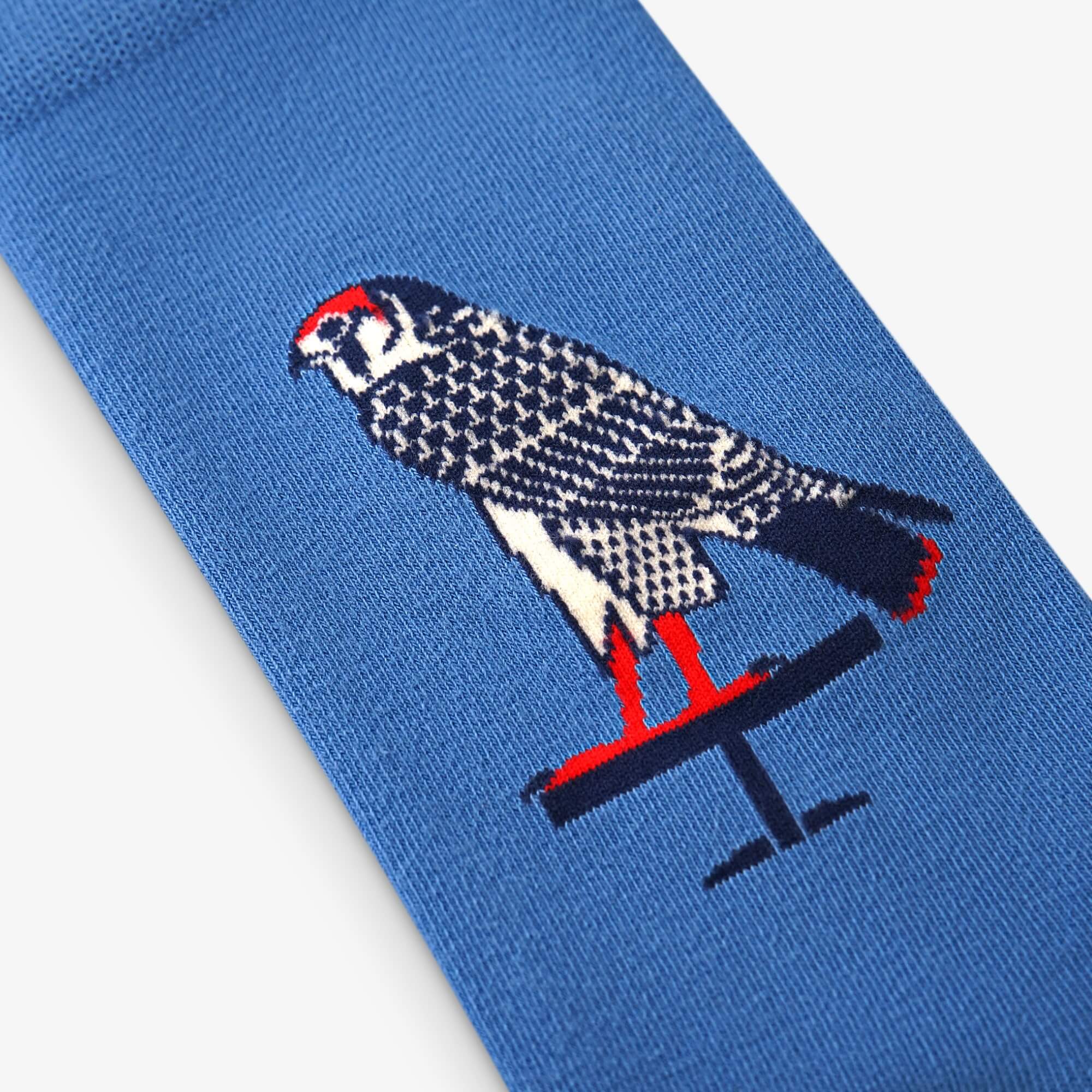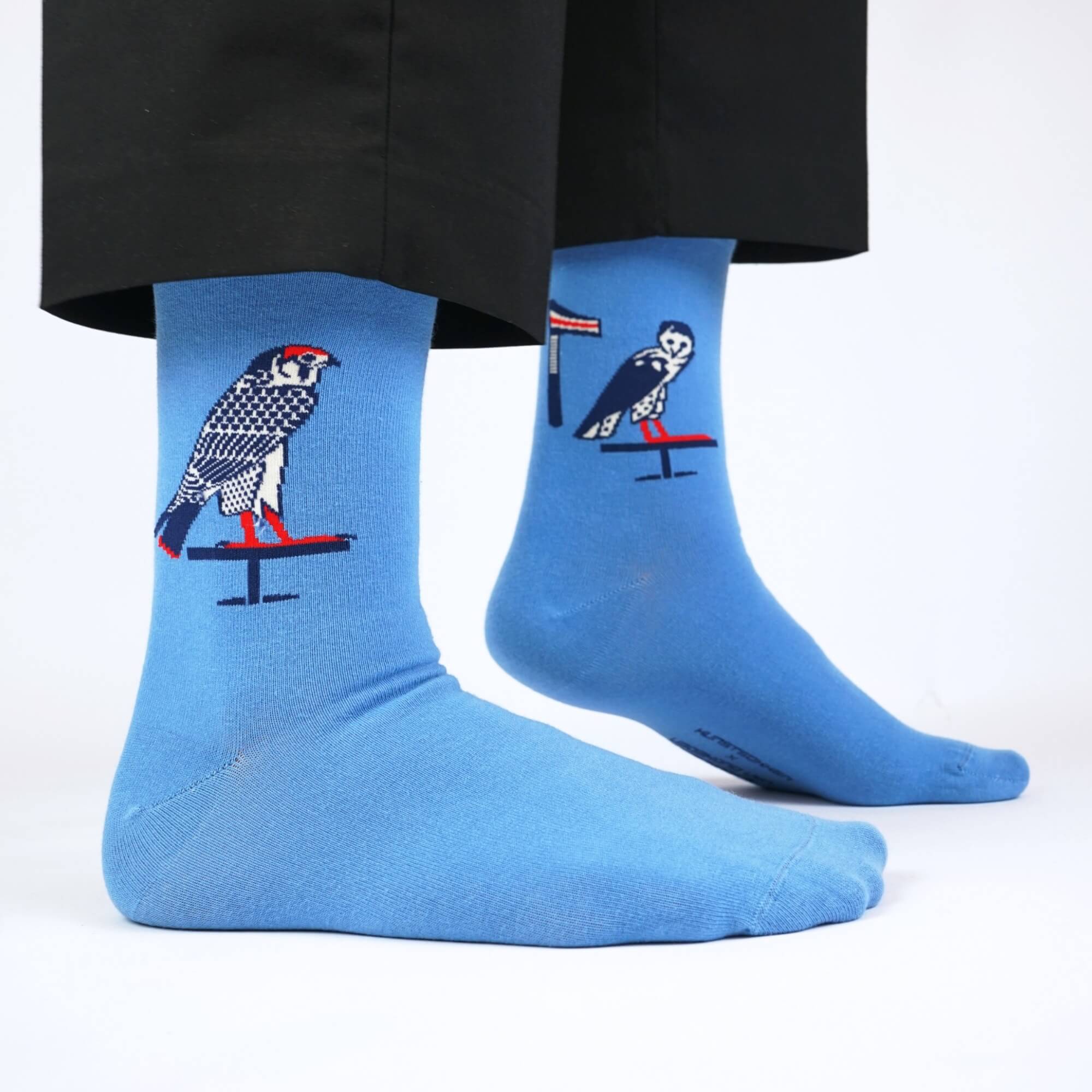 These socks are more than a design; they're a lesson in the language of the ancient Egyptians. Every bird, every symbol tells a story about gods, rituals, and the written word. The warm colors – ochre, blue, and green – are directly inspired by the original paint pigments applied to the 2,600-year-old sarcophagus.