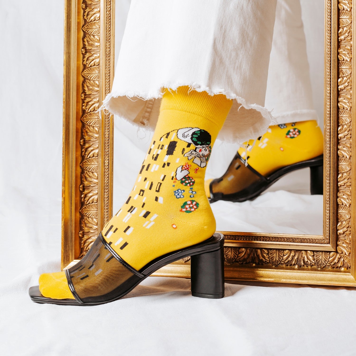 This 3-pack brings together the most famous faces in art history. From the mysterious smile of the Mona Lisa to the loving embrace of The Kiss – each sock in this collection carries a portrait that the whole world knows and loves.