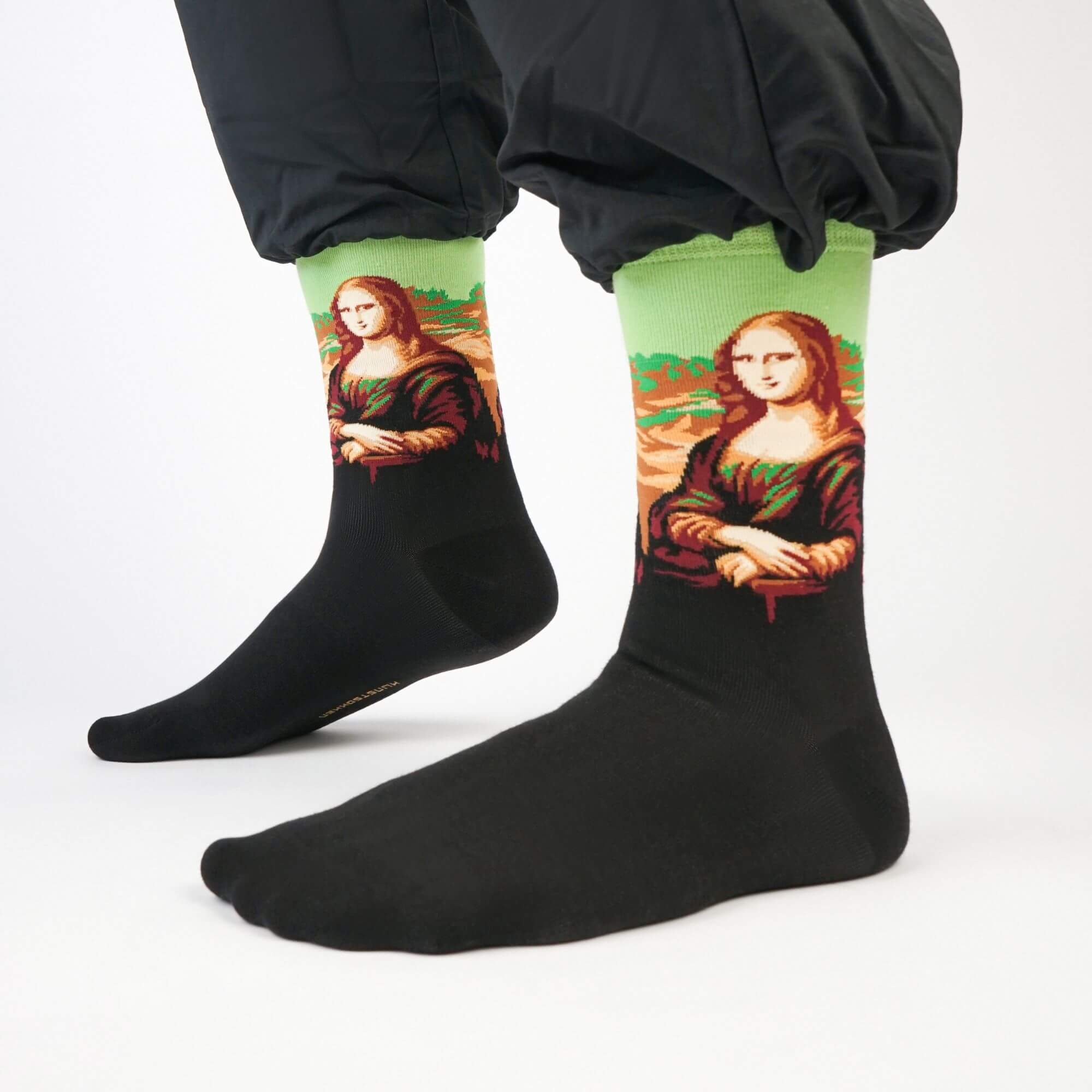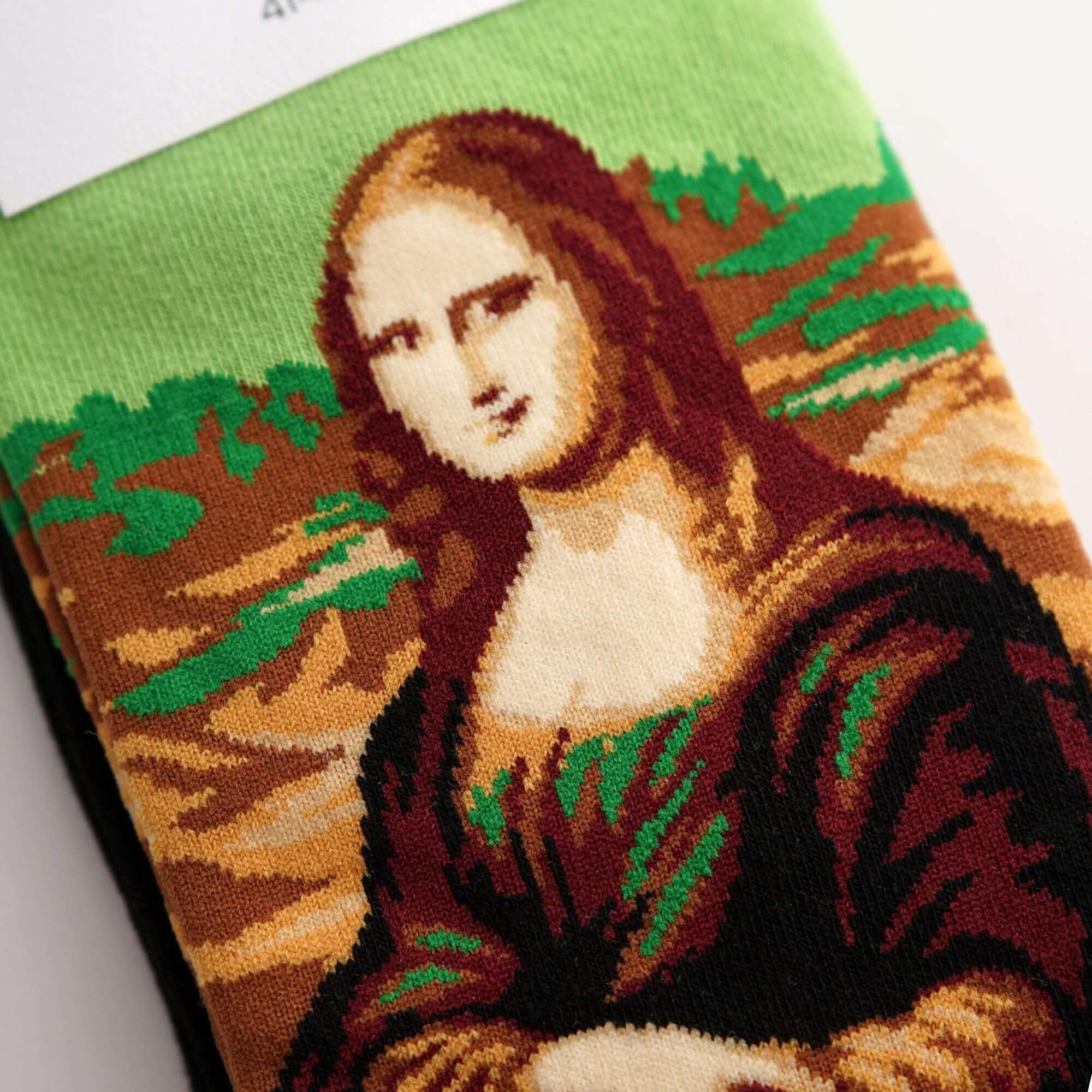 Wear a piece of art history with these socks. The famous smile and subtle details are knitted to perfection.
