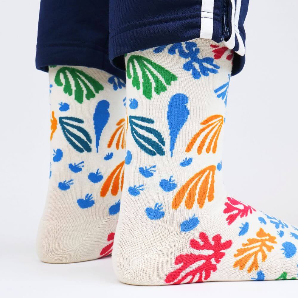 The vibrant shapes and pure colours demonstrate Matisse's mastery in creating joy through simplicity. These socks transform his poetic vision into a wearable work of art.